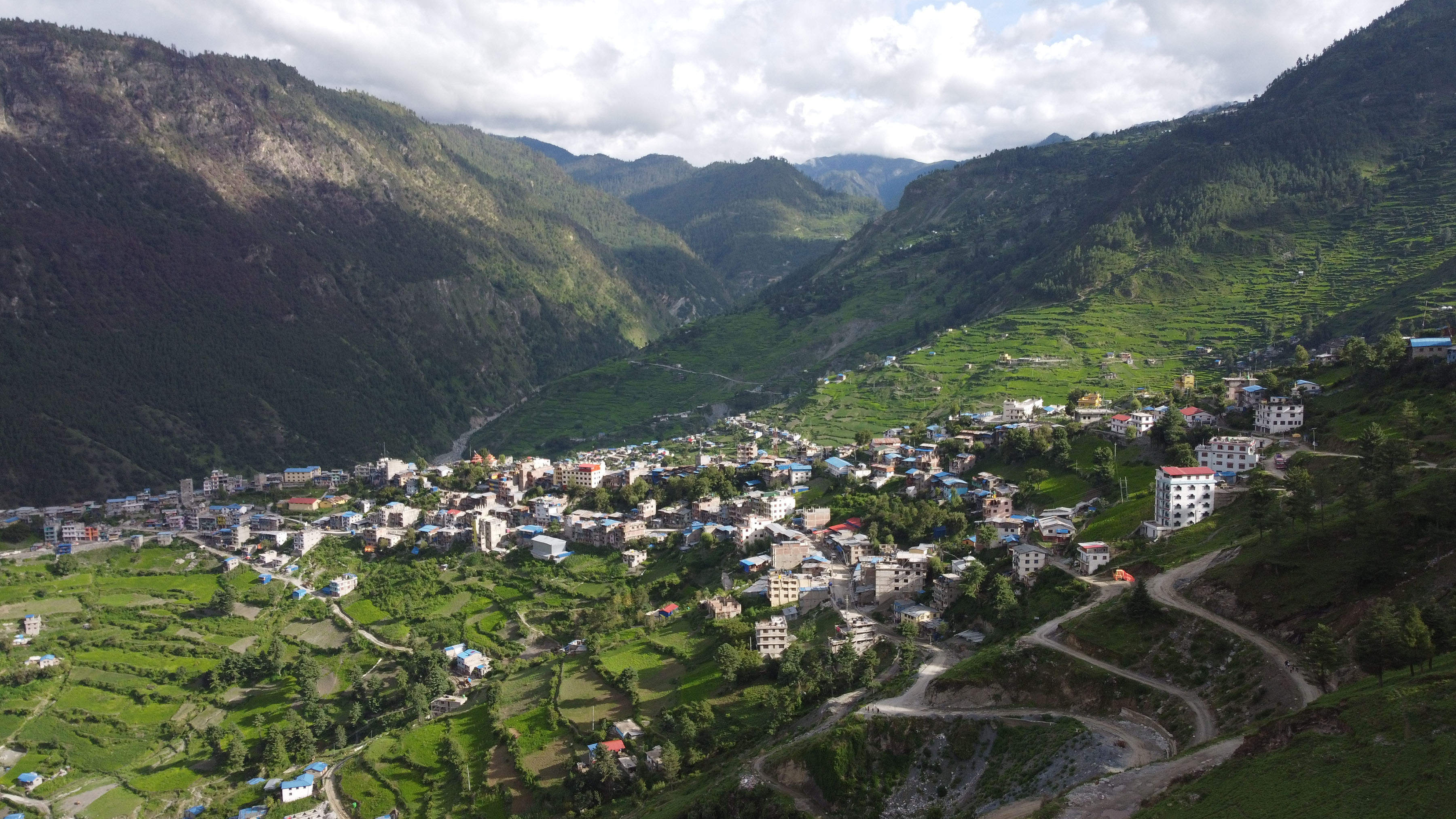 मुगुको छायाँनाथ रारा नगरपालिका-१ र २ वडामा पर्ने मुगुको सदरमुकाम गमगढी बजार र आसपासको क्षेत्र। तस्बिरः सुरेश आचार्य