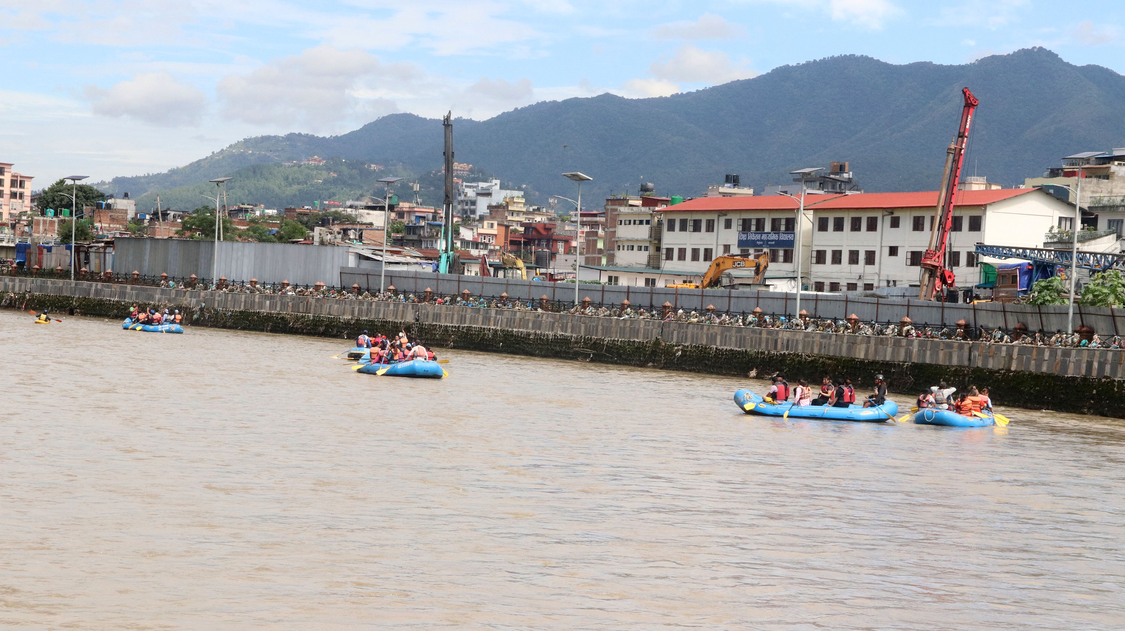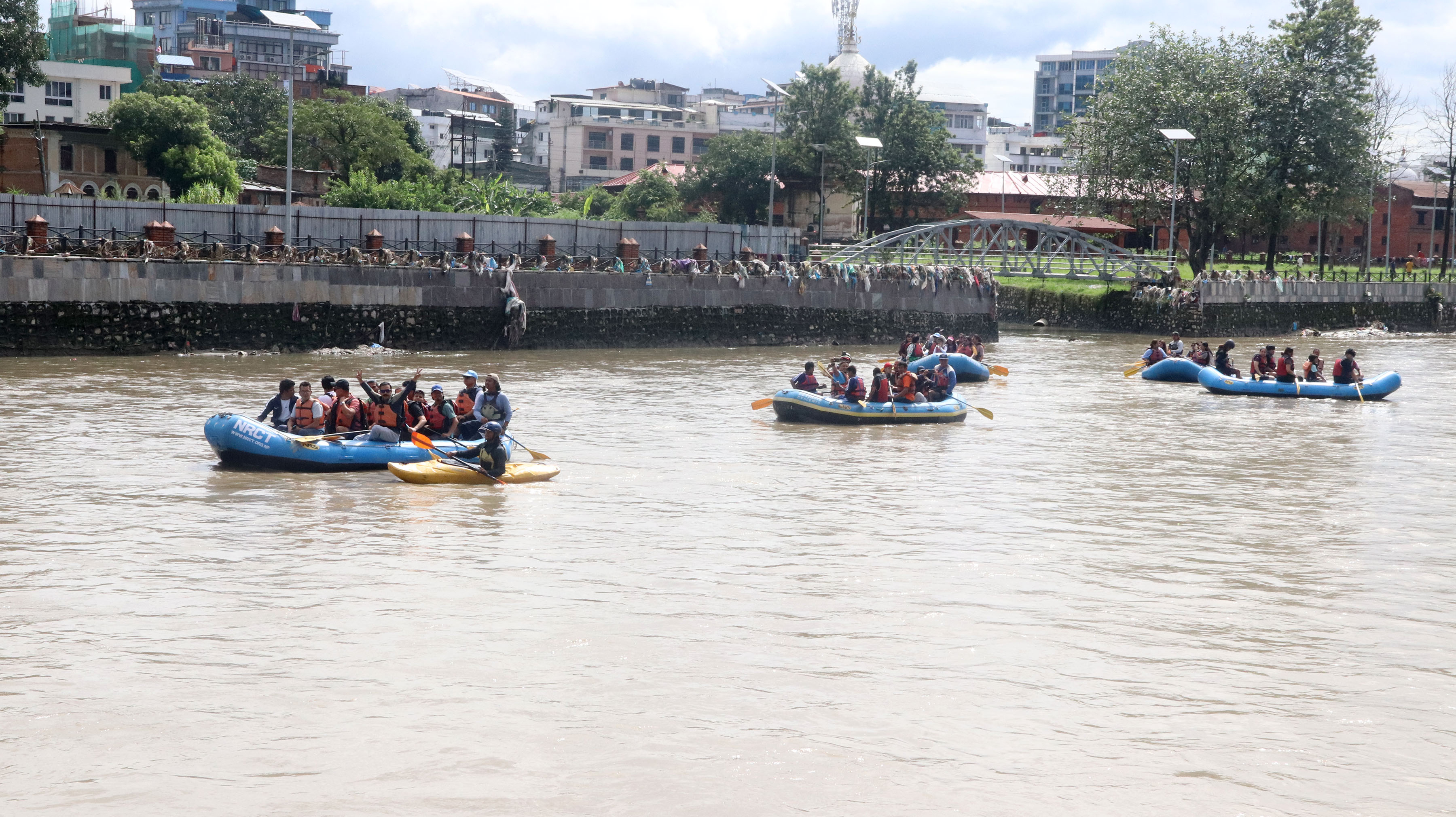 नेपाल नदी संरक्षण संस्था र फ्रेन्ड्स क्लव कुपोन्डोलले शनिबार बागमती नदीमा कुपोन्डोलबाट गरेको जलयात्रामा सहभागीहरु। तस्बिर : हरिराम भेटुवाल
