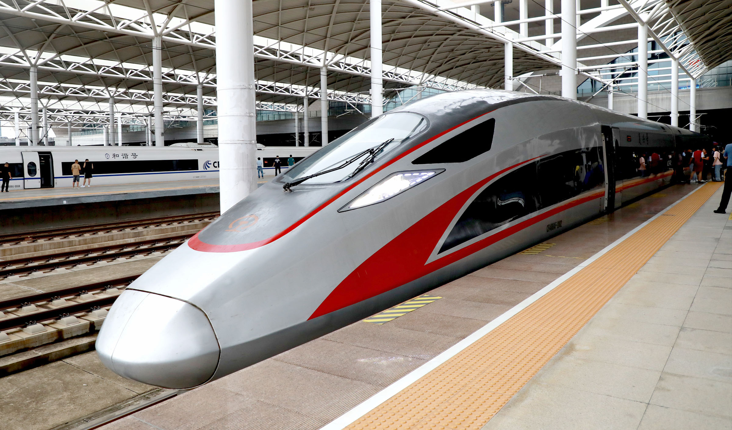 चीनको राजधानी बेइजिङबाट विभिन्न प्रदेशमा जानका लागि तीव्र गतिमा चल्ने हाइस्पिड रेल। प्रतिघण्टा ३५० किलो मिटरसम्म गुड्ने भएकाले लामो दूरीमा जानुपर्ने यात्रुहरू यसै रेलमार्फत आवतजावत गर्ने गर्छन्। तस्बिरः रत्न श्रेष्ठ/रासस