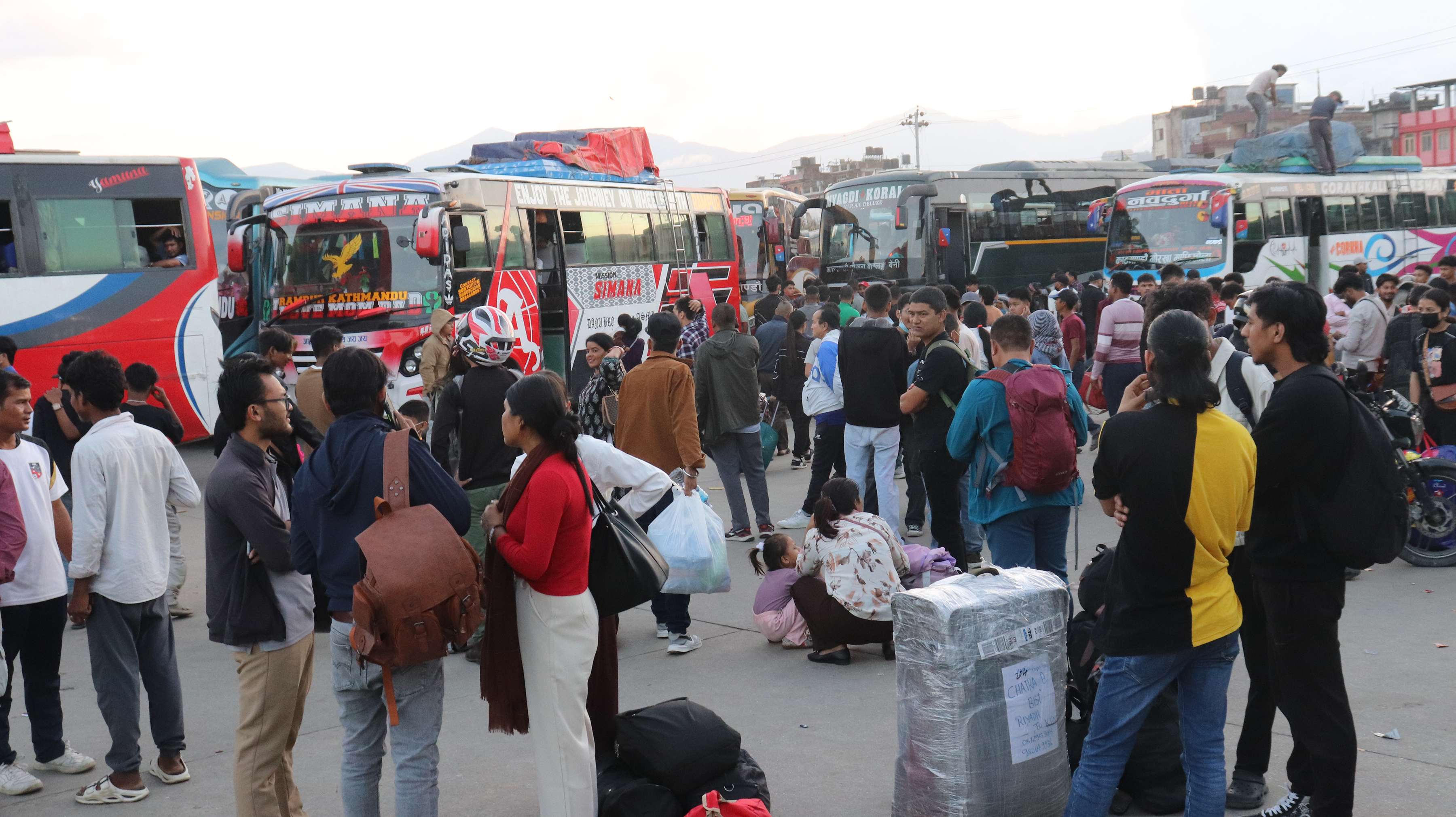 काठमाडौँको गोङ्गबुस्थित नयाँ बसपार्कमा बडादसैँका लागि घर जान गाडी चढ्न आएका यात्रुहरु । तस्बिर : हरिराम भेटुवाल / राससकाठमाडौँको गोङ्गबुस्थित नयाँ बसपार्कमा बडादसैँका लागि घर जान गाडी चढ्न आएका यात्रुहरुको घुइँचो । तस्बिर : हरिराम भेटुवाल / राससकाठमाडौँको गोङ्गबुस्थित नयाँ बसपार्कमा बडादसैँका लागि घर जान गाडी चढ्न आएका यात्रुहरुको घुइँचो । तस्बिर : हरिराम भेटुवाल / राससकाठमाडौँको नयाँ बसपार्कमा दसैँका लागि घर जान आएका सर्वसाधारणको घुइँचो । तस्बिर : हरिराम भेटुवाल/रासस