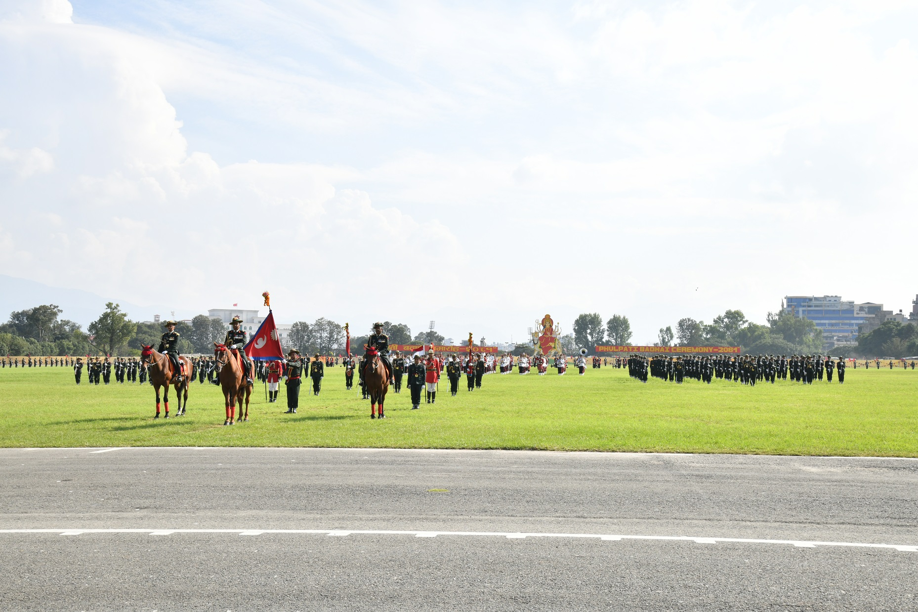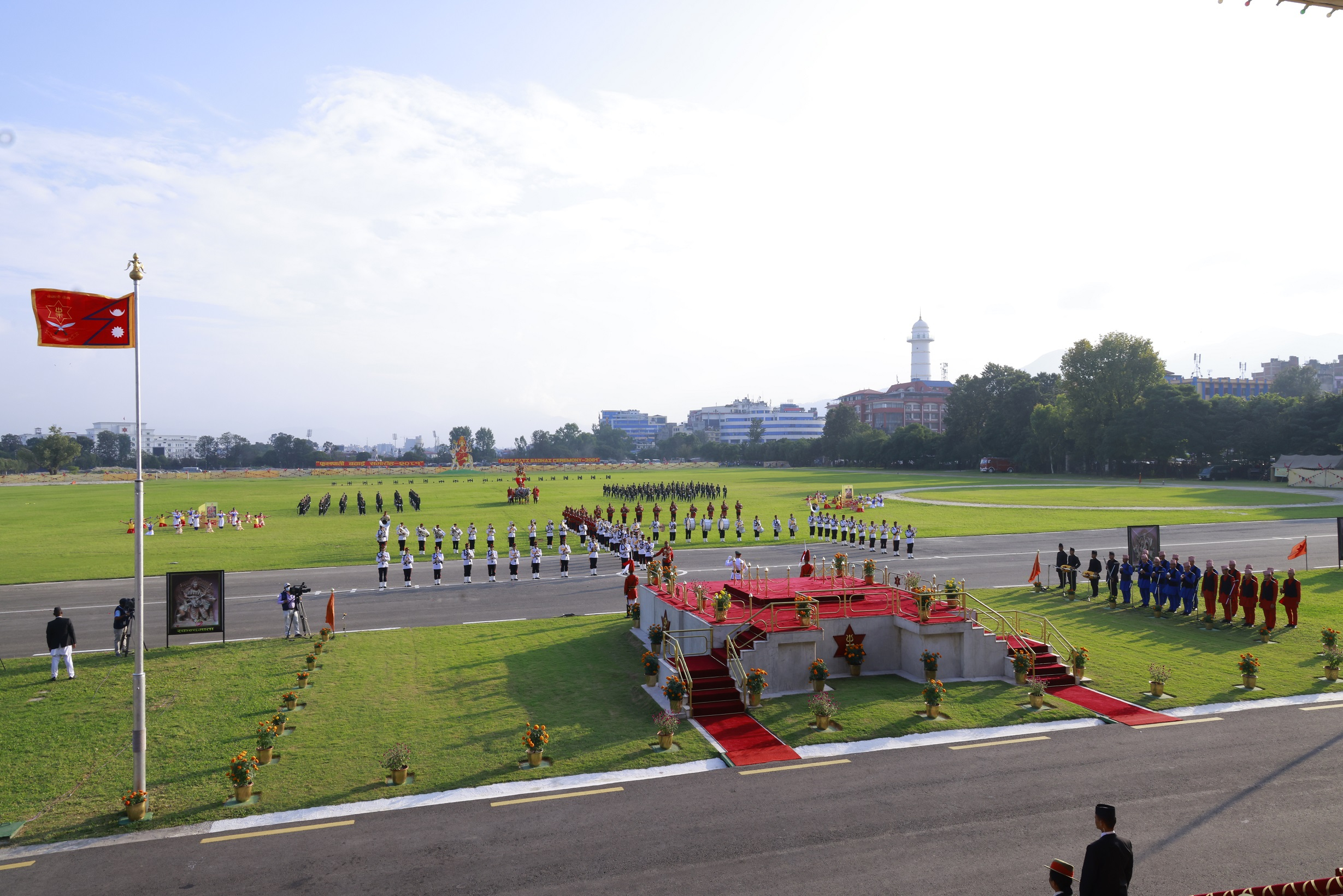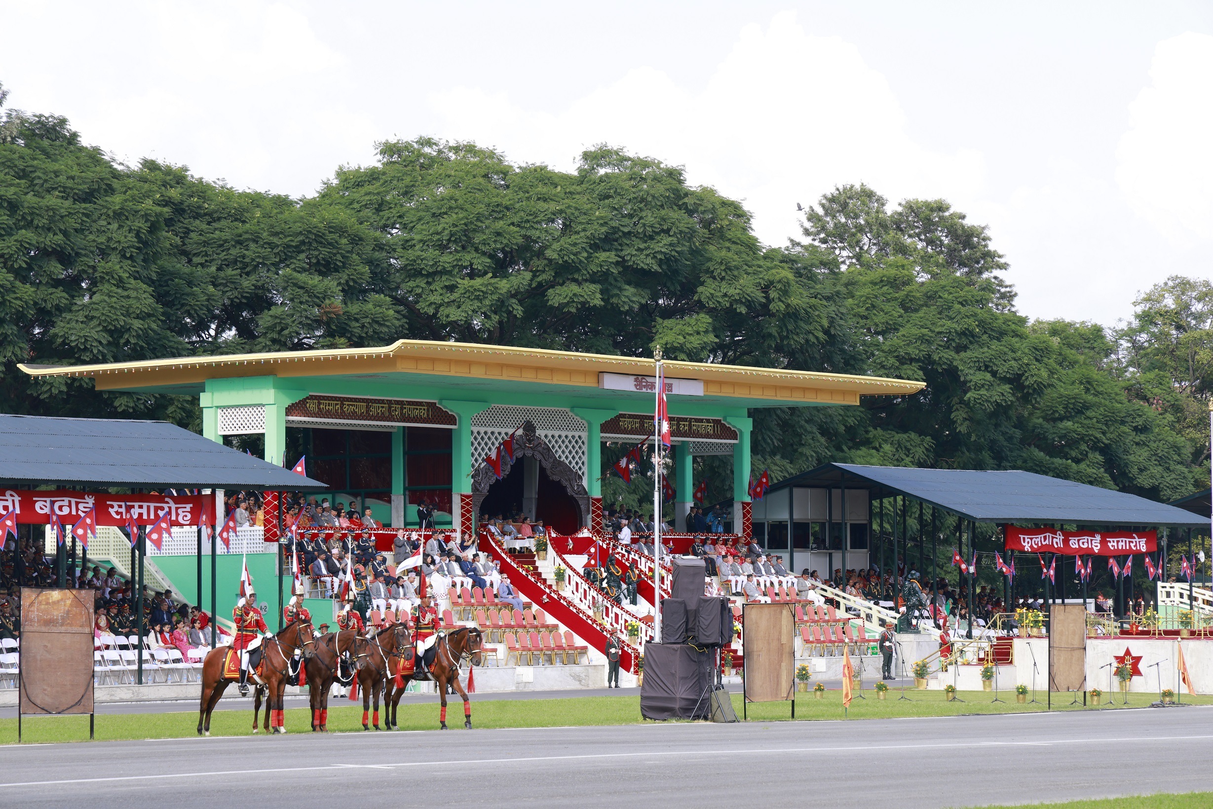 सैनिक मञ्च टुँडिखेलमा आज ‘फूलपाती बढाइँ समारोह–२०८१’ सम्पन्न गरिएको छ। समारोहमा नेपाली सेनाका परमाधिपति राष्ट्रपति रामचन्द्र पौडेलको सम्मानमा नेपाली सेनाले सलामी अर्पण गरेको थियो। उक्त समारोहमा सेनाको टोलीले राइफलबाट लहरे र एकठ्ठा तथा तोपबाट पनि बढाइँ गरेको थियो। समारोहमा सैनिक परेड प्रदर्शन, दुर्गा नाचका साथै सेनाको हेलिकप्टरबाट ‘फूलपाती बढाइँ समारोह–२०८१’ ब्यानर प्रदर्शन र पुष्पवृष्टि गरिएको थियो।