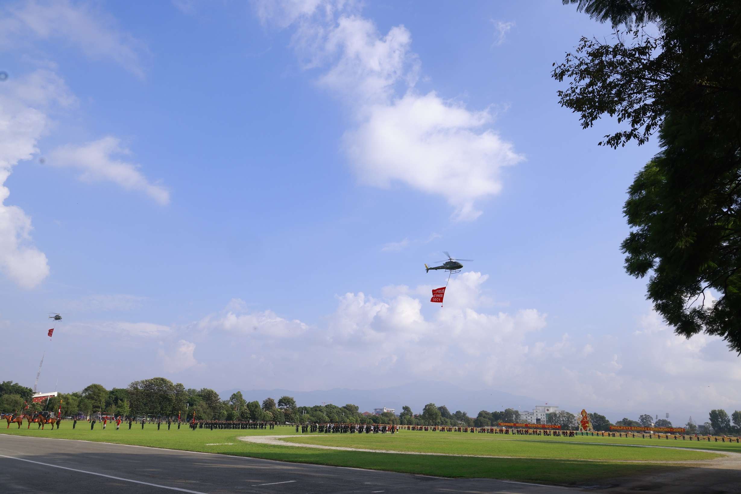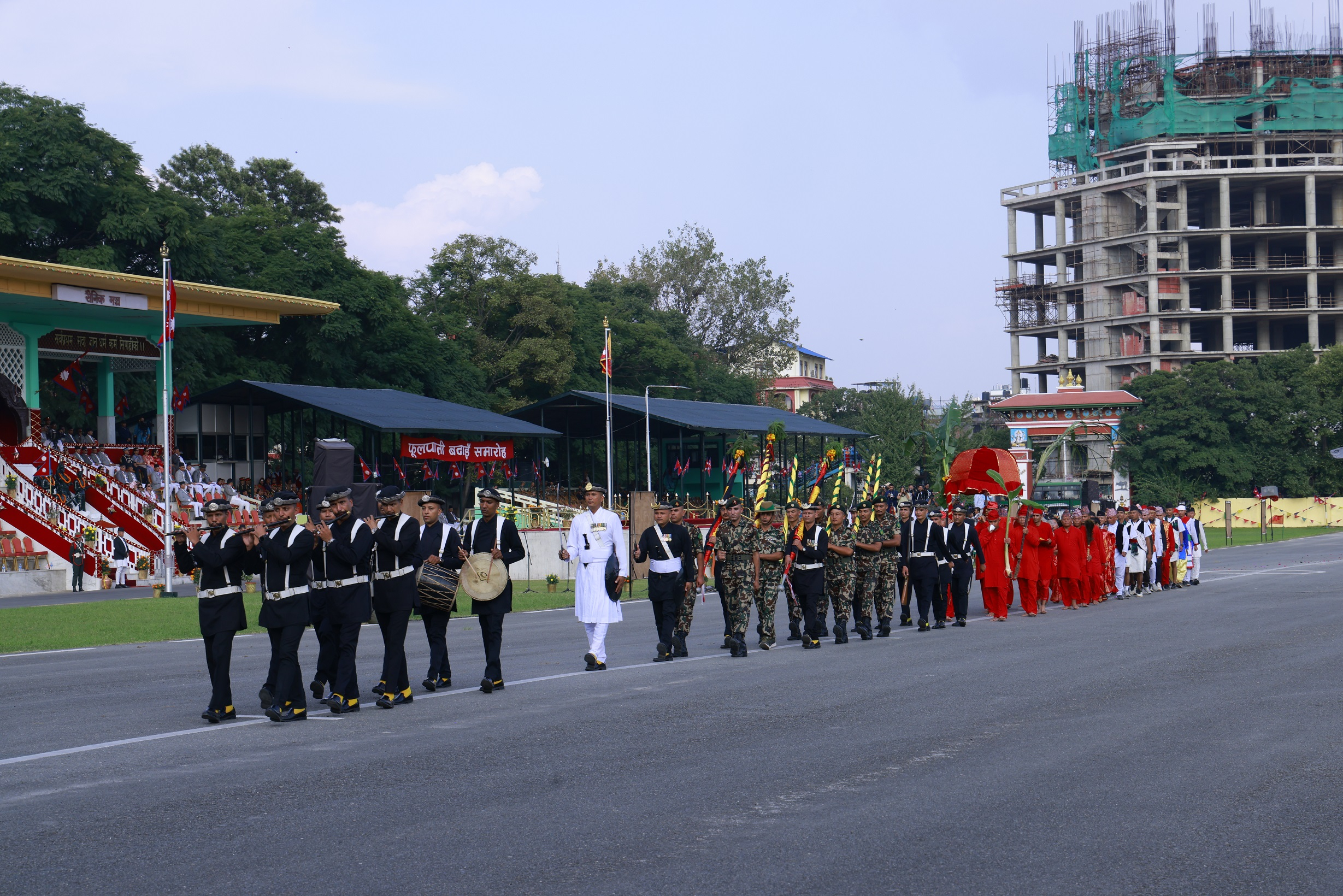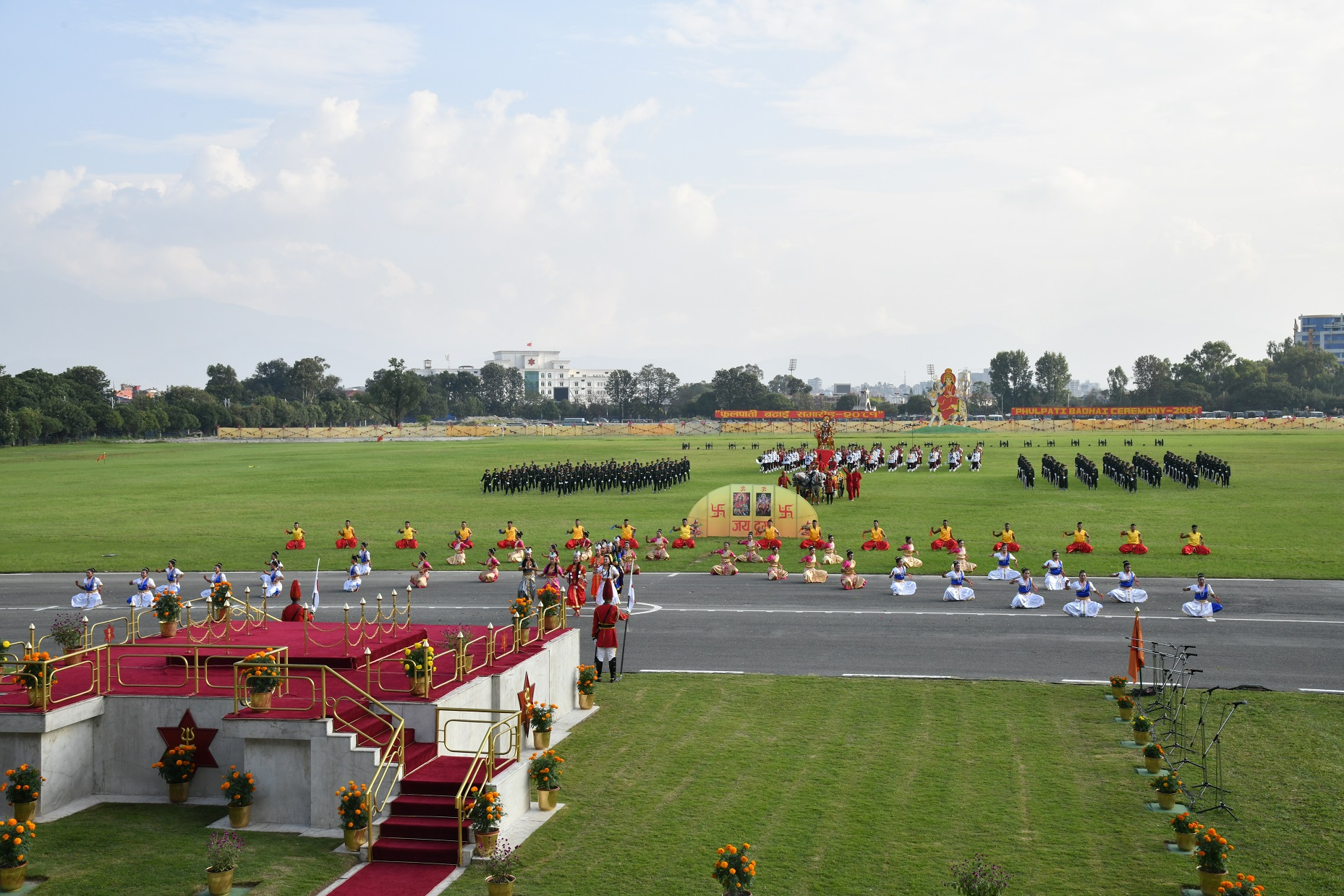 सैनिक मञ्च टुँडिखेलमा आज ‘फूलपाती बढाइँ समारोह–२०८१’ सम्पन्न गरिएको छ। समारोहमा नेपाली सेनाका परमाधिपति राष्ट्रपति रामचन्द्र पौडेलको सम्मानमा नेपाली सेनाले सलामी अर्पण गरेको थियो। उक्त समारोहमा सेनाको टोलीले राइफलबाट लहरे र एकठ्ठा तथा तोपबाट पनि बढाइँ गरेको थियो। समारोहमा सैनिक परेड प्रदर्शन, दुर्गा नाचका साथै सेनाको हेलिकप्टरबाट ‘फूलपाती बढाइँ समारोह–२०८१’ ब्यानर प्रदर्शन र पुष्पवृष्टि गरिएको थियो।