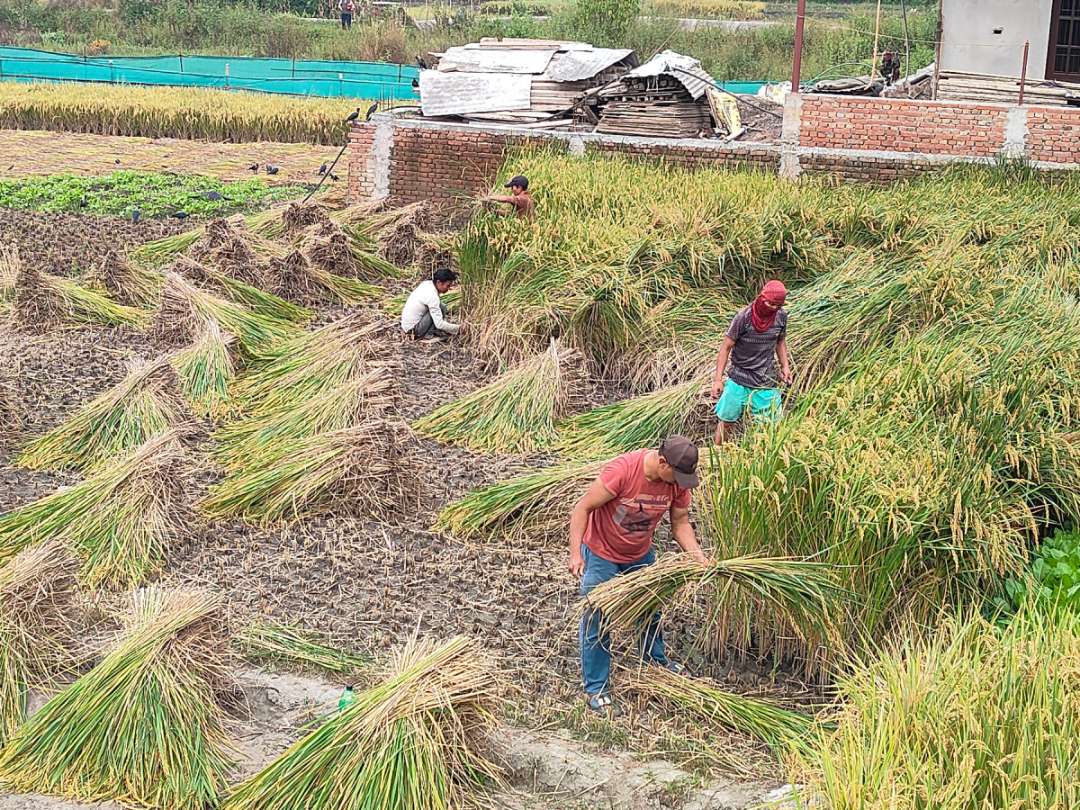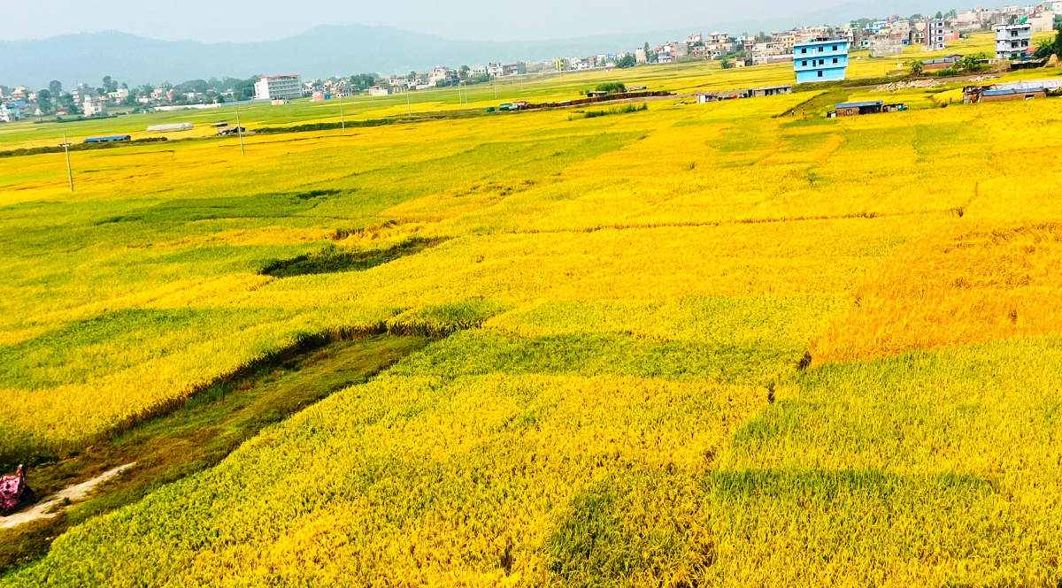 भक्तपुरको मध्यपुर थिमि, सिद्बिकाली चोकस्थित खेतमा बुधबार बिहानैदेखि धान काट्दै किसान। धान पाक्नथालेपछि अहिले किसान धान भित्र्याउन व्यस्त छन्। तस्बिरः रत्न श्रेष्ठसुर्खेत वीरेन्द्रनगर नगरपालिकास्थित बजार क्षेत्रको तल्लो भागमा किसानले गरेको धान खेतीमा पहेंलपुर भएर पाकेको धानबाली। तस्बिर: हेमन्त केसीमकवानपुरको चित्लाङ गाउँ र गाउँमा पहेँलपुर भएर पाकेको धानबाली । तस्विर : चन्द्रकला क्षेत्रीमकवानपुरको थाहा नगरपालिका–९ स्थित चित्लाङमा धान चुट्दै किसान । तस्बिरः हरिराम भेटुवालबडादसैँ सकिएसँगै मकवानपुरको चित्लाङमा धान भित्र्याउन खेतमा व्यस्त किसान । तस्बिर : चन्द्रकला क्षेत्रीबडादसैँ सकिएसँगै मकवानपुरको चित्लाङमा धान भित्र्याउन खेतमा व्यस्त किसान । तस्बिर : चन्द्रकला क्षेत्रीकाठमाडौं टोखाको खेतमा पाकेर पहेँलपुर भएको धानबाली । यतिबेला काठमाडौंको काठ क्षेत्रका किसानलाई धान भित्र्याउन चटारो छ। तस्बिर : हरिराम भेटुवाल