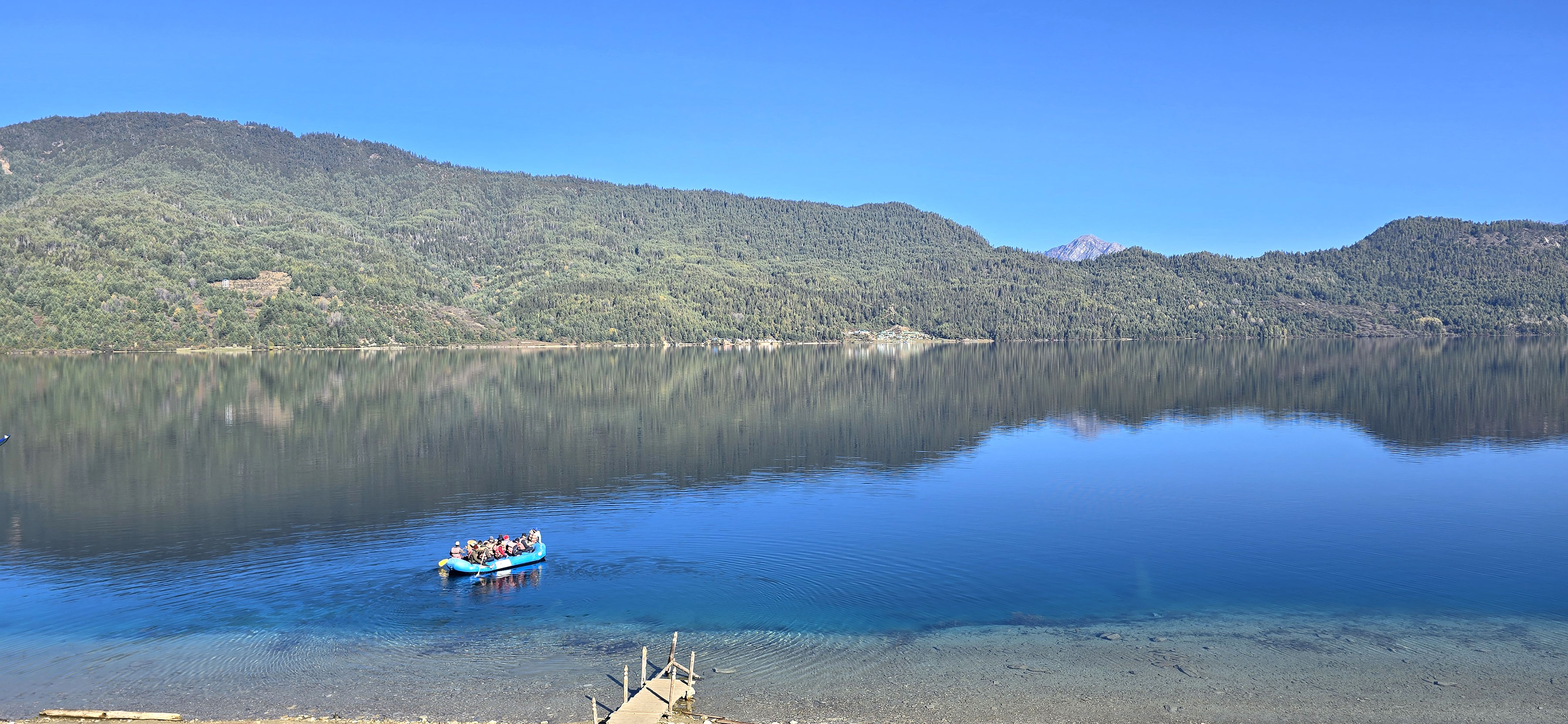 रारा ताल र तालमा डुङ्गा सयरमा रमाइरहेका पर्यटक ।